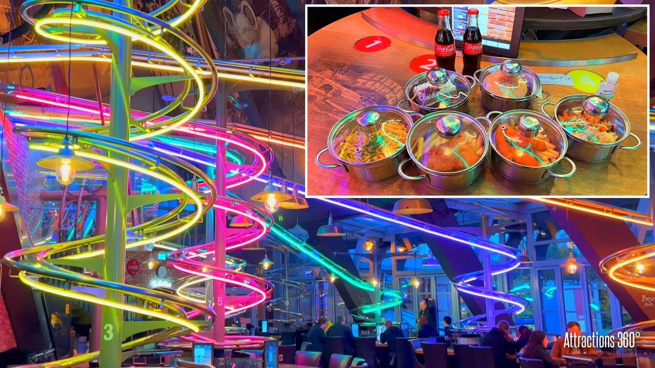 این رستوران مجهز به ترن هوایی است، اما نه برای سوار شدن، بلکه برای دریافت غذای سفارشی! وقتی خانوادهها غذای خود را سفارش دادند، ترن هوایی غذا را برای آنها سر میز میآورد.