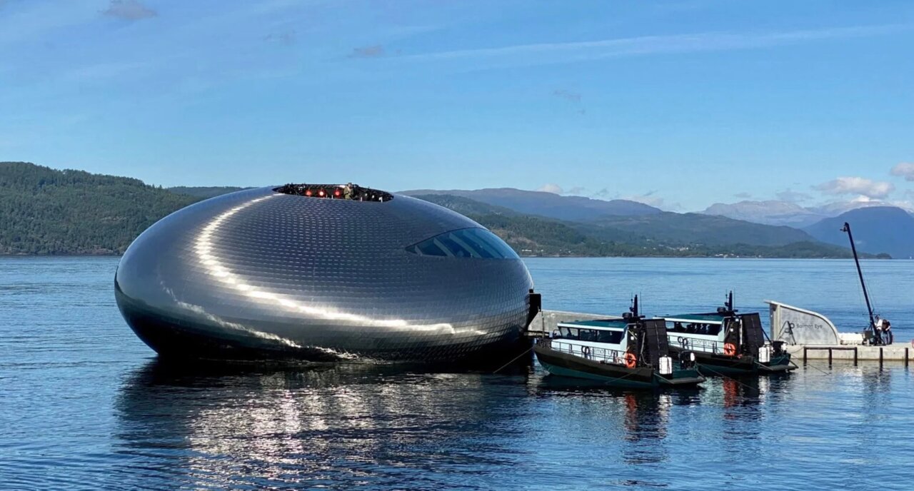 این گوی نقرهای رنگ وسط دریا در شهر هاردانگرفیورد نروژ، رستورانی جالب برای افرادی است که دوست دارند در دل دریا غذا بخورند.