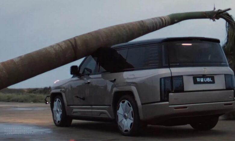 در جدیدترین تست دوام که بیشتر به یک سکانس سینمایی شباهت داشت، مهندسان بی‌وای‌دی یک درخت نخل سلطنتی غول‌پیکر را بارها از ارتفاع روی سقف نسخه U۸L رها کردند تا استحکام این شاسی‌بلند سنگین‌وزن را نشان دهند. این سقوط صرفا یک ضربه آرام از بالا نبود؛ درخت سه بار از ارتفاع‌های مختلف و با شدت فزاینده رها شد تا فشار واقعی و کاملا جدی به سازه خودرو وارد شود.