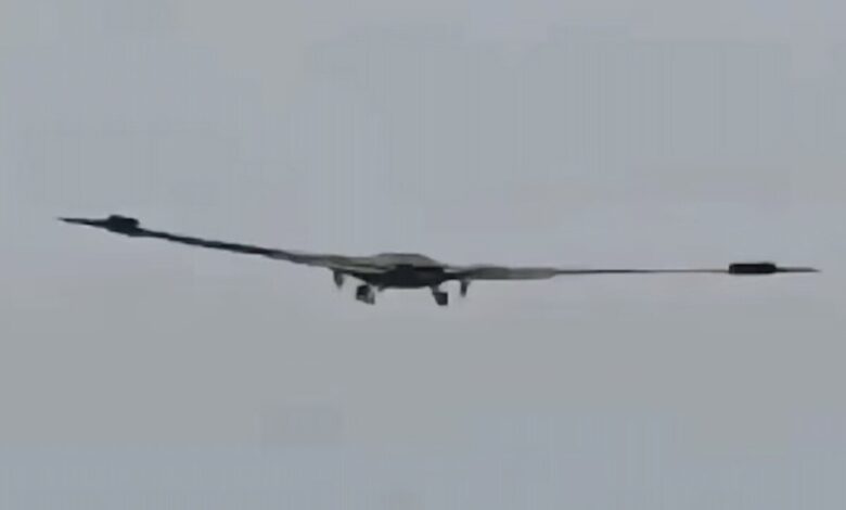 به گزارش خبرآنلاین، تصویر منتشر شده از این پرنده در حال پرواز، از نمایی از عقب آن است که ارابه فرودش پایین آمده، درهای بزرگ چرخ اصلی باز هستند و بالکهای دو تکهای مشابه با بمبافکن B-2 در لبههای بیرونی بالها باز شدهاند که همگی با حالت برخاست یا فرود سازگار هستند. از این زاویه مشخص است که بدنه ترکیبشده بال و بدنه شامل بخش مرکزی پهن با سطح بالایی کاملاً تخت است. در این تصویر، این پرنده کابین ندارد؛ هرچند نمیتوان احتمال وجود آن را کاملاً رد کرد. شکل بخش مرکزی هم نشان میدهد که این هواپیما احتمالاً دو موتوره است و خروجیهای باریک شکاف مانندی دارد؛ هرچند که کیفیت پایین تصویر مانع از تشخیص دقیق جزئیات میشود.